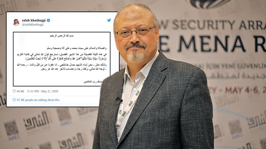 جاء في تغريدة نشرت على شكل بيان على حساب تويتر لصلاح خاشقجي، أحد أبناء الصحافي السعودي جمال خاشقجي، الذي قتلته بطريقة بشعة عناصر من المخابرات السعودية في قنصلية المملكة في إسطنبول، أنه وإخوته قد عفوا عن قتلة أبيهم.