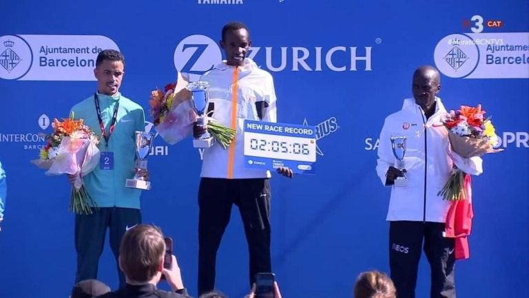 وقطع العدّاء المغربي، الذي يبصم على أداء جيد في المنافسات العالمية، المسافة في ساعتين و5 دقائق و12 ثانية.