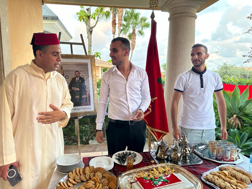 تخليدا لذكرى عيد العرش المجيد والتي تصادف هذه السنة الذكرى ال24 لتربع صاحب الجلالة الملك محمد السادس على عرش أسلافه المنعمين، نظمت القنصلية العامة للمملكة المغربية بفالنسيا حفل بهيجا بمقر اقامة القنصل العام للمملكة المغربية السيد كمال أريفي.