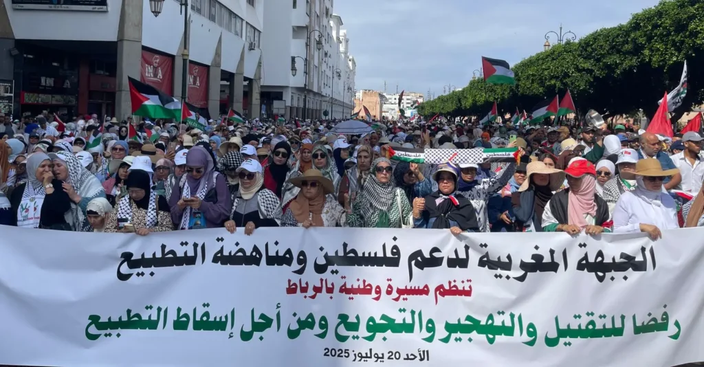 شهدت العاصمة المغربية، الرباط، مشاركة حاشدة من آلاف المواطنين في المسيرة الوطنية الشعبية، التي دعت إليها “الجبهة المغربية لدعم فلسطين ومناهضة التطبيع”.